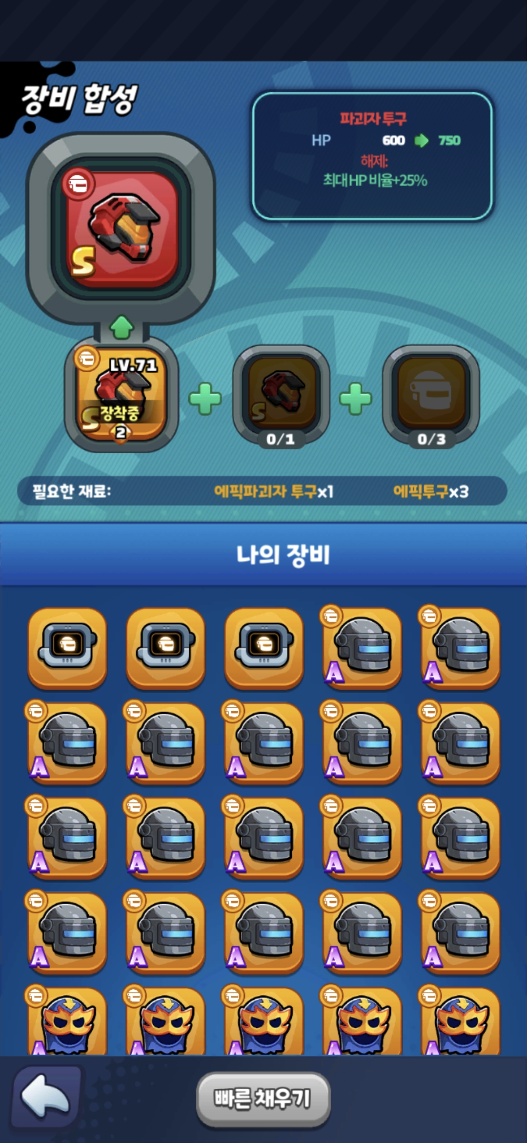 감자슉슈슉 장비 합성 필요 재료 갯수
